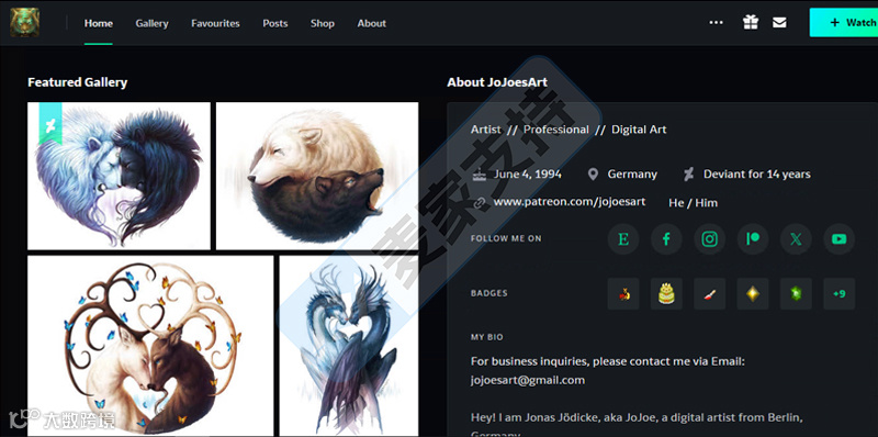 Jonas Sebastian Jodicke 是一位来自德国柏林的数字幻想领域艺术家。在其年少之时,就对想象中的世界、奇特的生物和各种各样的动物充满了浓厚兴趣。当他14岁的时候,偶然发现了数字绘画,随后便投身于这个领域开始进行创作。他的作品因对雄伟的动物和神奇美妙的风景的精彩描绘而闻名遐迩,同时还将大胆醒目的色彩与富含精神意义的主题完美融合。