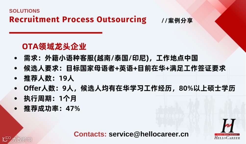 如您正面临批量国际招聘的挑战,欢迎联系HelloCareer,了解我们的RPO服务如何为您提供解决方案。