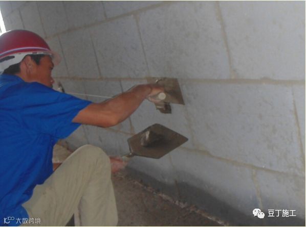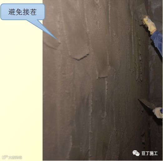 1)抹灰作业;根据湿筋的高度抹面层灰,建议抹灰厚度控制在15mm以内,超过15mm时增加分层,搓抹密实。