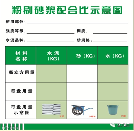 2)现场设置配合比标志牌;根据现场砂子原材含水率换算成施工配合比,施工时应通过磅秤称量。