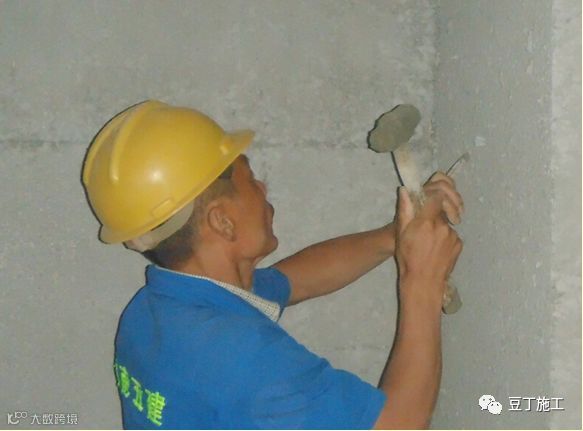 7.10 阴角、阳角分别采用阴角抹刀和阳角抹刀修方正、修直。采用长铝合金尺收阴阳角。