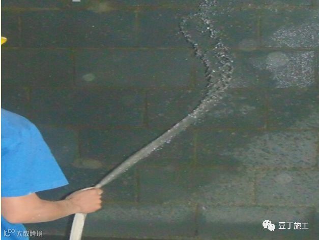 4)夏天天气炎热,水分蒸发快,对吸水较快的砌体墙面可采用软毛滚筒蘸水湿润墙面。
