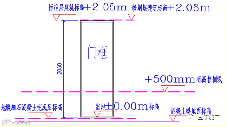 5.4 入户门洞口粉刷应充分考虑楼地面厚度以及门框高度,门框顶部空隙按10mm留设,避免门头空隙过大
