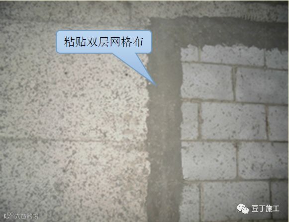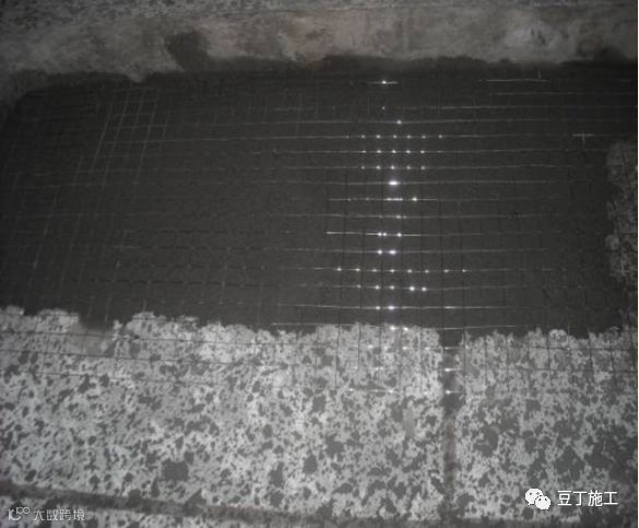 4)不同材料的基层交接处未按规范要求挂网,或加强网与各基体的搭接宽度小于100mm。