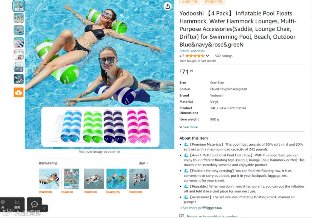 2024.08.14亚马逊选品推荐(仅供参考):水上吊床