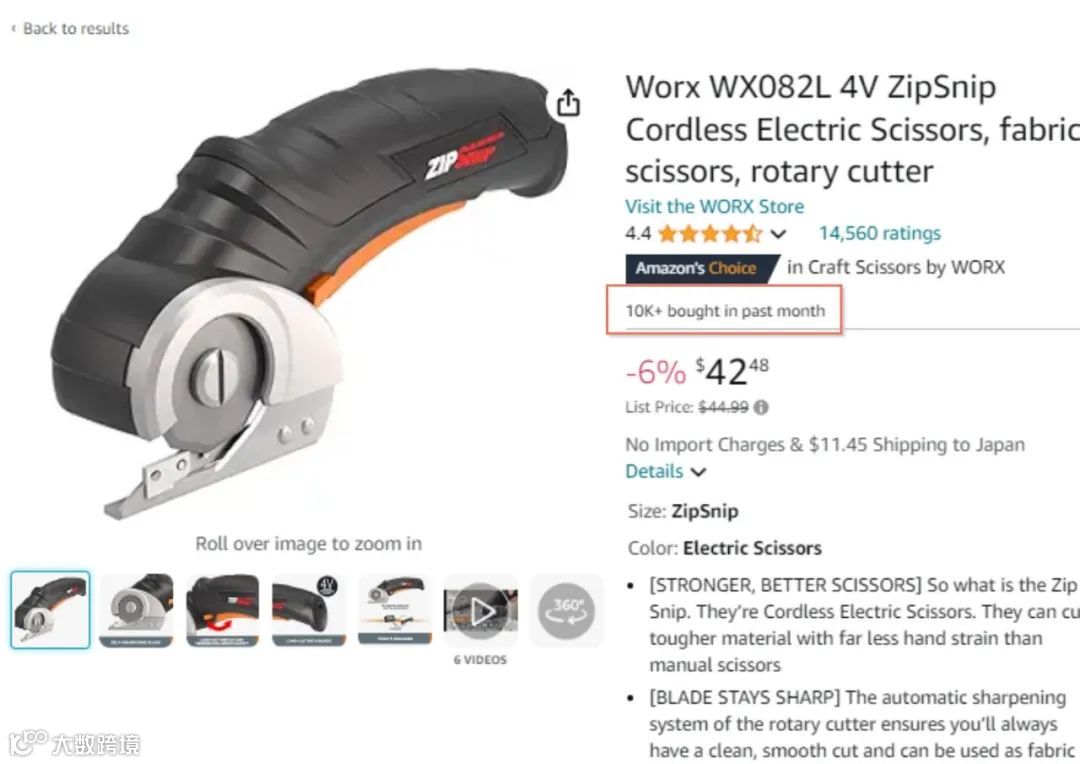 同样月销10000+的单品则是无绳电动剪刀,售价仅42.48美元。