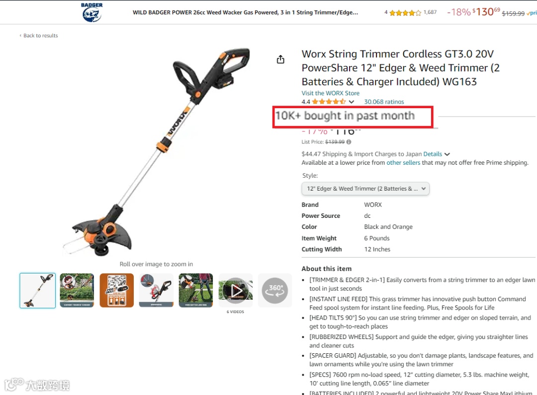因此,除草机当之无愧位列美国市场的爆卖品类;而在这“群雄争霸”的市场中,中国园艺品牌WORX却能杀出重围,其除草机单品月销超万件,备受消费者青睐。
