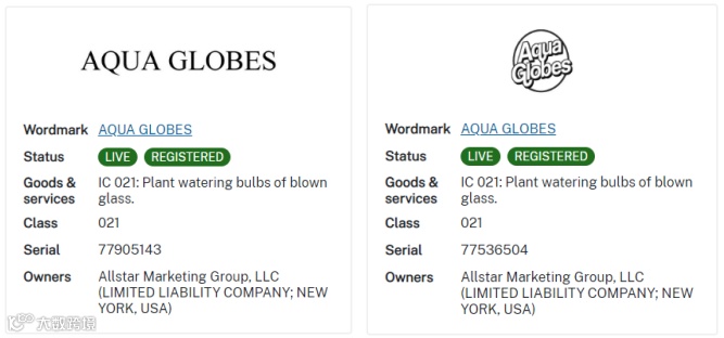 Aqua Globes文字商标及图形商标未经授权均不可出现在Listing上: