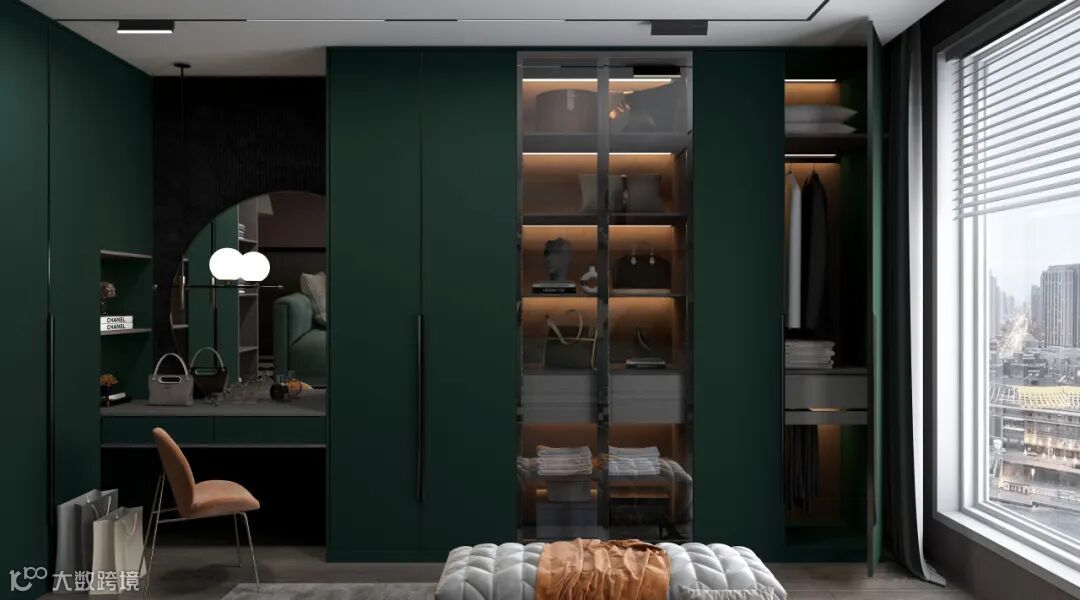 天然纤维编织的细密纹路让冰冷的金属框架与刻板分区全然隐退,将衣帽间蜕变为被温暖包裹的私享宫殿,举手投足皆是奢华。