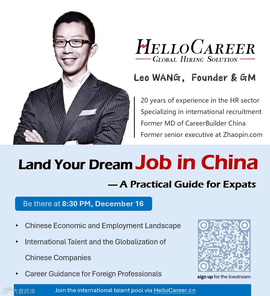 At HelloCareer, Leo leads a team dedicated to connecting global talent with opportunities at Chinese companies going abroad and foreign enterprises in China—helping build bridges in today’s globalized workforce.