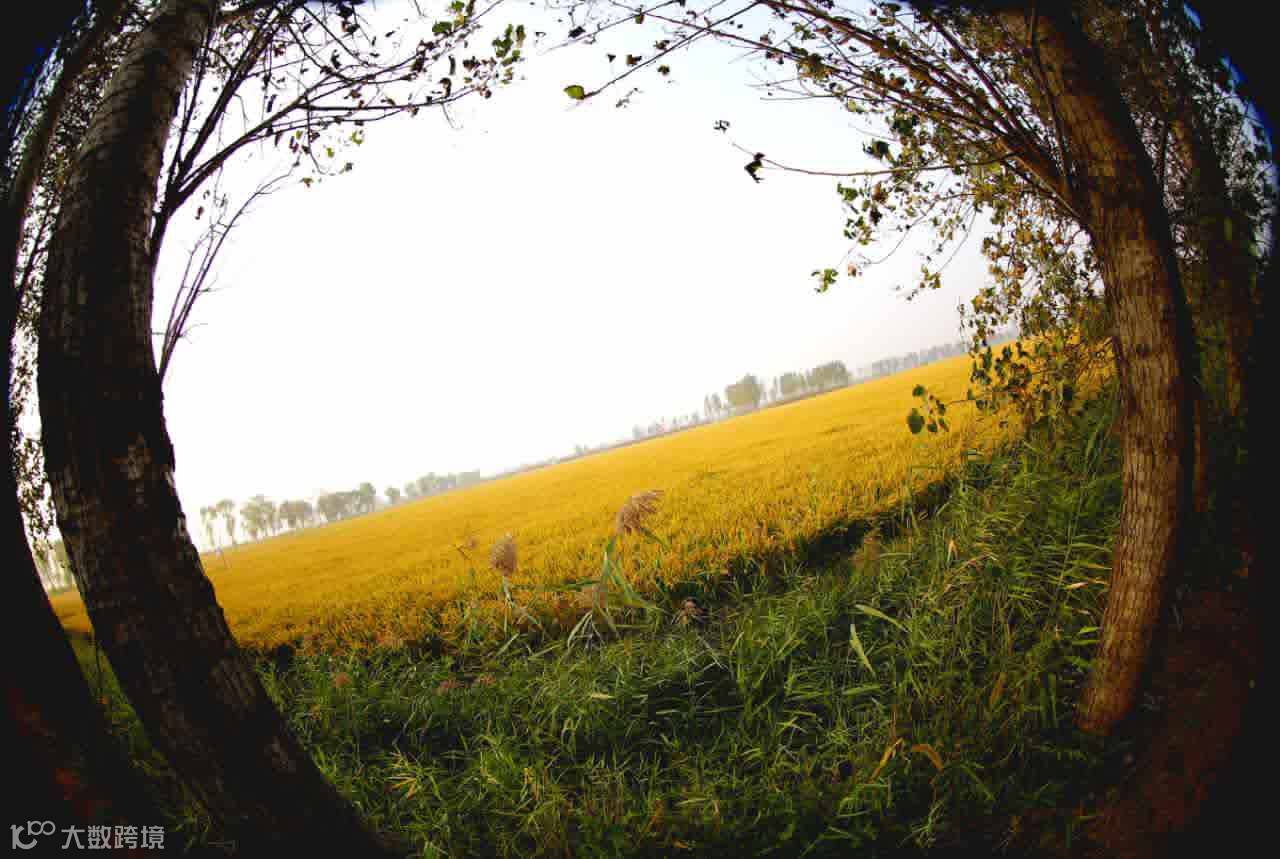 点评:鱼眼镜头拍摄的秋天稻田地。鱼眼镜头拍摄角度达到180度,并且边缘呈圆形收纳,增添了画面的艺术效果。整体画面像一只瞳孔里面的画面。单从画面元素构成上讲,环境虽美,缺乏主体,缺乏视觉兴趣点。从曝光上讲,天空过曝。另外,画面倾斜,也不符合人眼视觉习惯。