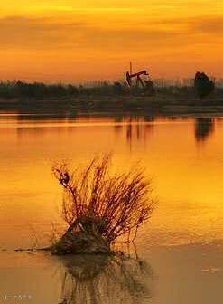 点评:红红火火的油田风光片。画面偏暖,很养眼。构图上,一簇杂草做前景,增强了画面的纵深感。感觉作为主体的井架采油树有点小,在浓重的天色下,难以引起观赏者的视觉注意。若是把那簇杂草做主体,不是最佳位置,画面略有失衡。如果大胆裁切一下,如下图的两种构图,画面元素建立起联系,视觉效果立刻发生了变化,形成非常平衡的完美构图。