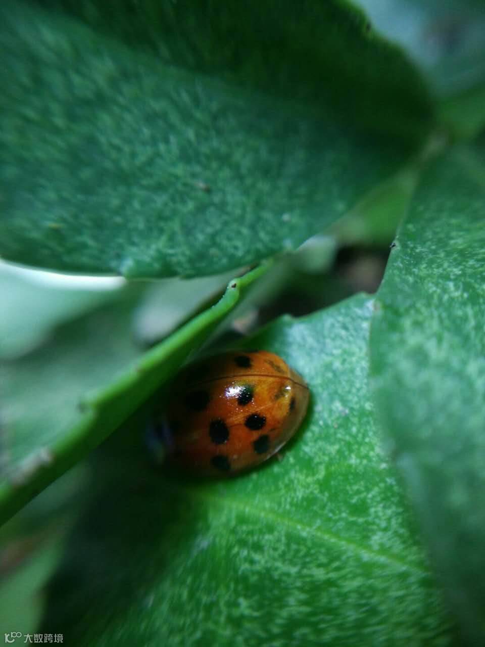 点评:一张微距摄影作品。对焦正确,主体清晰。光线运用得当,体现出瓢虫的质感。画面色彩影调对比强烈,突出瓢虫的存在感。不足是瓢虫的头部隐藏在暗部空间。拍摄昆虫,一般来说要以昆虫的头部、眼睛为主体为对焦点。