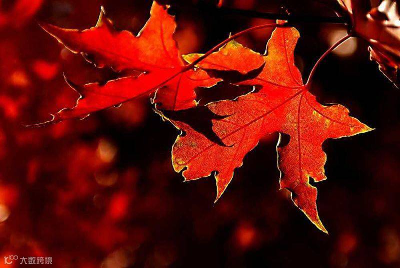 点评:逆光下的秋天红叶。曝光准确,构图呈对角线延伸,给人动态突破感。背景较暗,更加突出了逆光的叶子轮廓,大光圈产生了圆形漂亮的光斑。稍有不足就是叶子有些枯败,对秋天的唯美景象略有影响。总体来说是一张很漂亮的秋叶图。