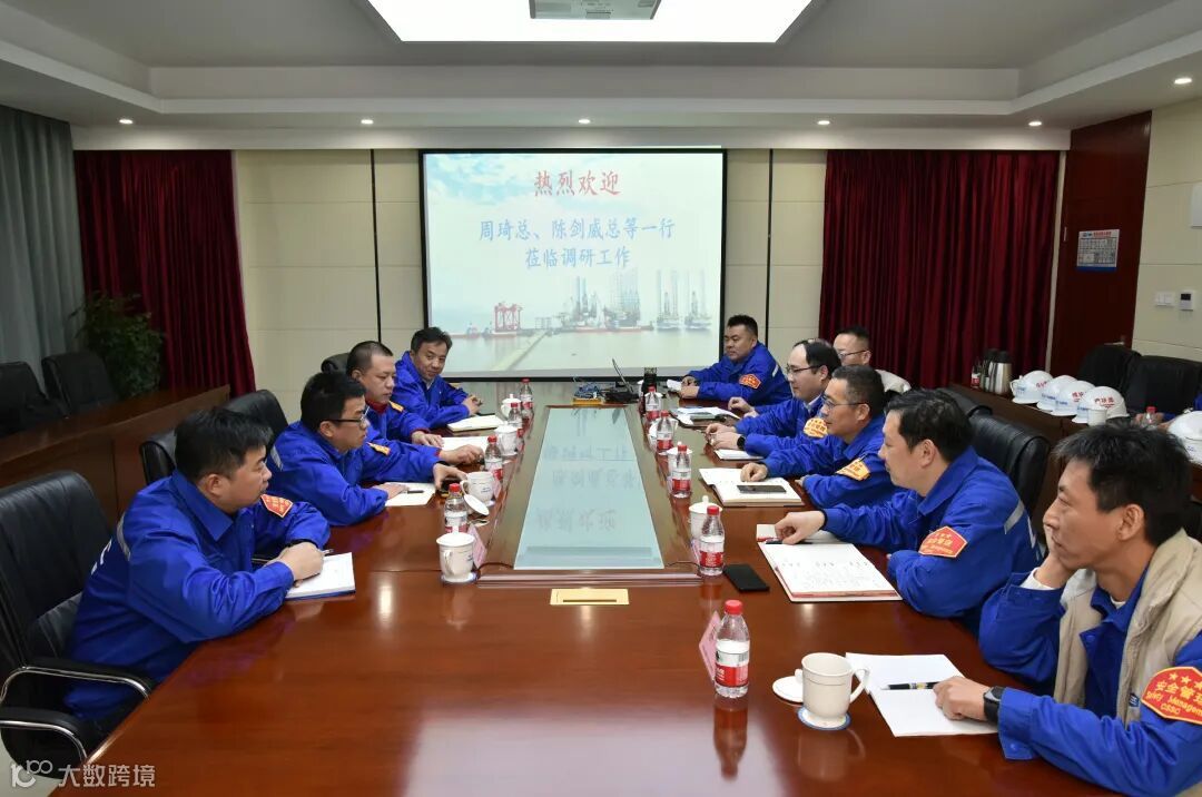 2月14日下午,外高桥造船副总经理周琦、总经理助理陈剑威到公司开展邮轮配套及非船项目专项调研,邮轮项目部和内装工程部相关负责人参加调研。公司党委书记、董事长吴拥军,党委副书记、总经理聂祥及生产管理部、技术部、模块部、启东分公司负责人参加。