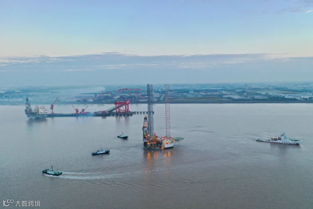10月23日上午,由中国船舶集团有限公司旗下上海外高桥造船有限公司为天津中船建信七号租赁有限公司建造的CJ46型自升式钻井平台SINOOCEAN WISDOM(H1369项目),安全顺利地拖离公司码头,正式交付中石化投入运营。