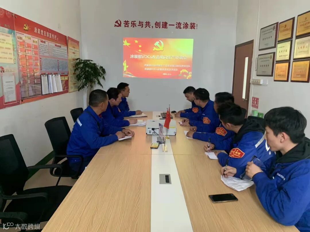 涂装厂房VOCs改造前期,涂装党支部精密策划,组织开展多次探讨会议,并成立涂装党支部VOCs设备改造党员突击队和涂装党支部分段涂装生产任务全面完成党员突击队。各党员突击队成员开展“头脑风暴”、献计献策,探讨如何在确保不耽误VOCs改造工期的前提下,最大化利用现有厂房资源。