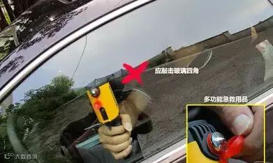 敲玻璃时应注意,应敲击侧窗玻璃四周的四个定点,而不要敲击前挡玻璃,因为前挡风玻璃是双层玻璃,含有树脂,且不易敲碎,而前后车窗则是网状构造的强化玻璃,敲碎一点即整块玻璃就全碎,因此应用专业锤在车窗玻璃一角的位置连续敲打。