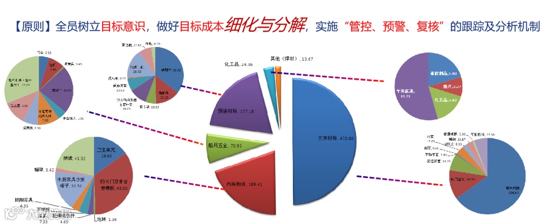 对于定稿的全面预算数据,配套部进一步强化数据的分解与分析,将单一的项目目标成本拆解成若干项物资采购成本,并根据今天大宗材料价格持续上涨的特点进一步分析各类物资与大宗材料的关联度。最终,在目标成本和市场实际双维度下定立了各子项的年度目标成本。也切实实现了“人人知成本、人人有目标”的采购成本控制管理格局。