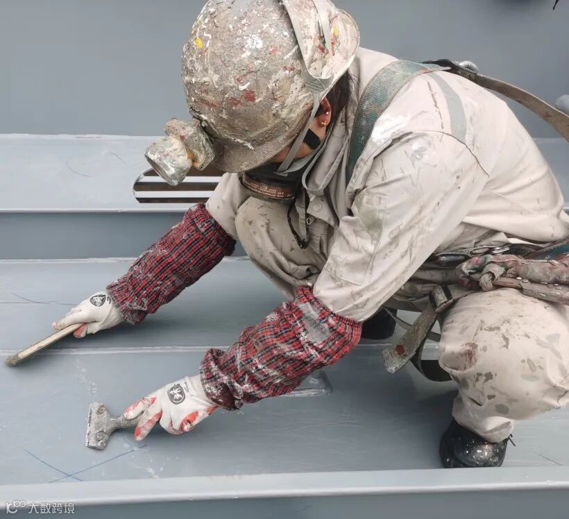 打磨工人金师傅对翼桥进行打磨修补。双手满茧,却依旧驱动航车凌云之上,打磨转轮铿锵作响,书写劳动者光芒。