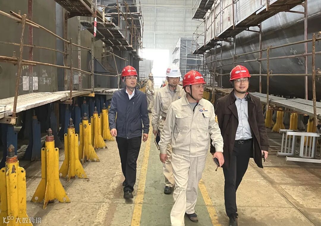 许江带领张勇一行先后参观了公司浮体车间、码头基础设施及在建船舶、平台等,并分享了公司目前在造船领域、S3桥梁项目中钢结构的制作经验。张勇对公司的热情接待表示感谢,并期待双方后续能在钢结构业务上增进合作,为临港新片区的建设做好服务。