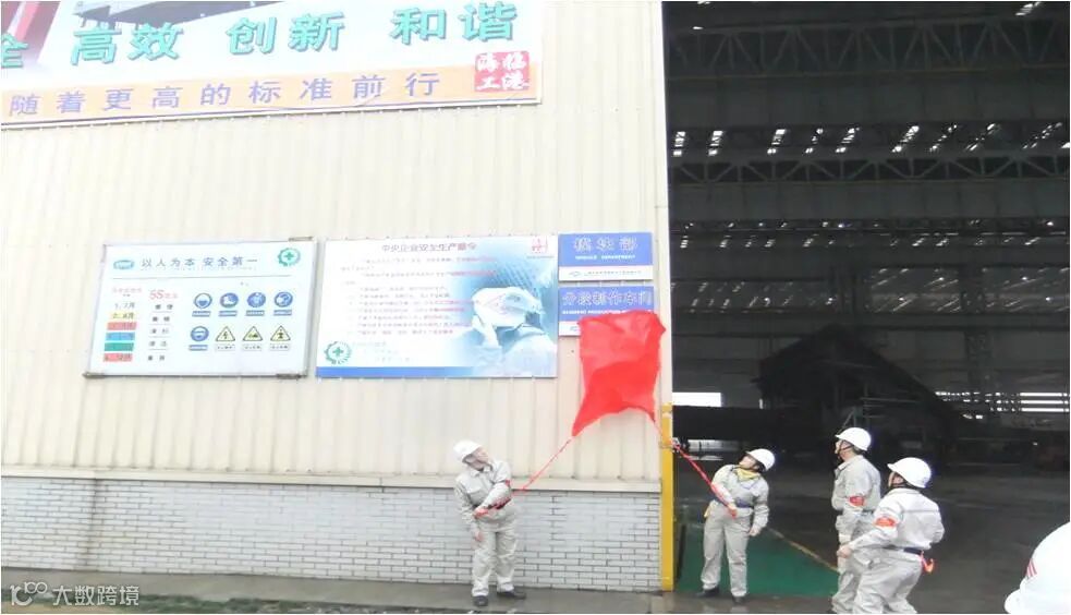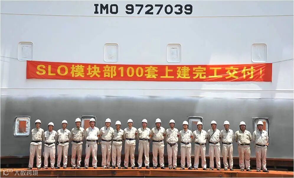 公司建造的第100套船舶上建产品——H1358船(为新加坡Navig8建造的30万吨VLCC)上建总段完工交付。