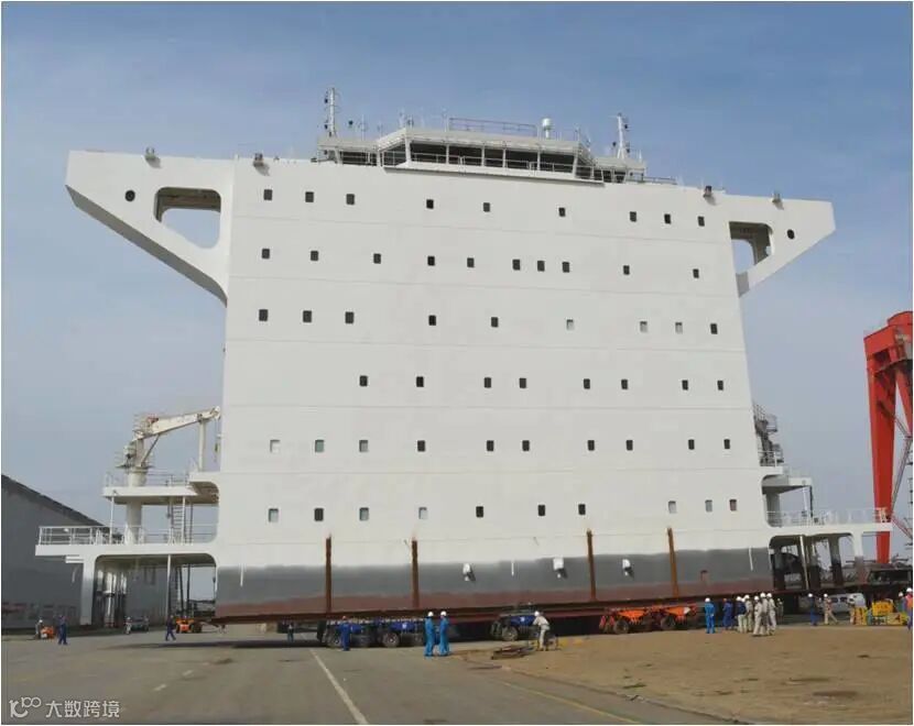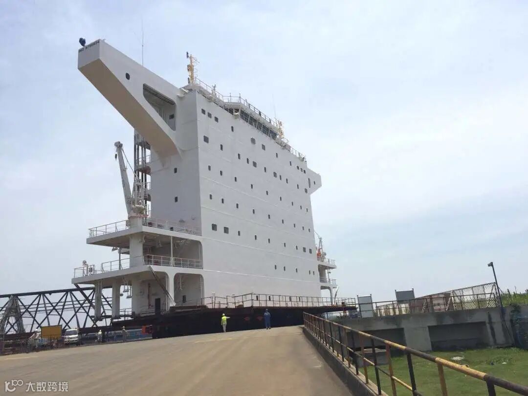 公司为中远海运建造的21000箱集装箱船首制船H1416船上层建筑模块顺利实现整体吊装运输回厂并交付。