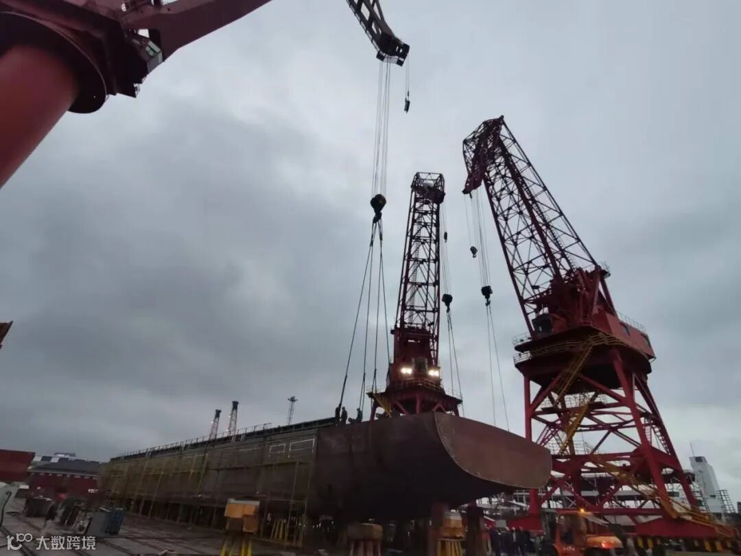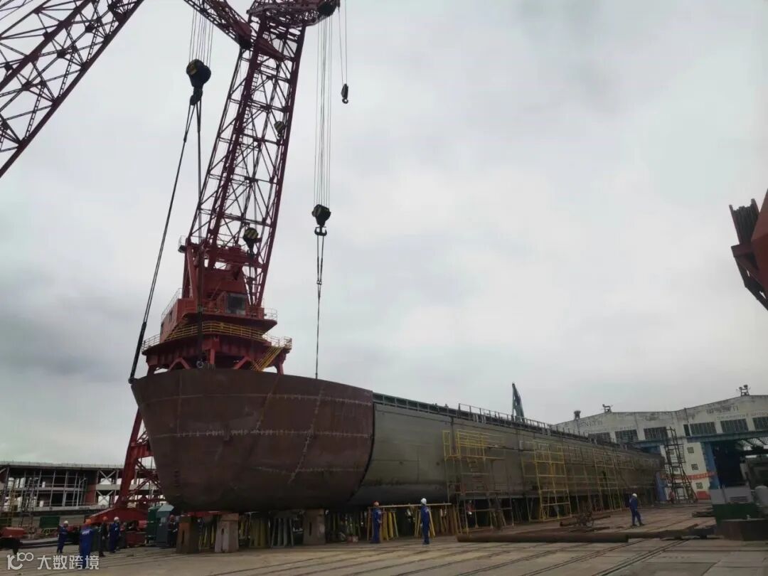 2022年9月30日,公司首制120TEU河海直达集装箱船1#船实现船首船尾上船台搭载,按计划实现全船主船体船台合拢贯通。