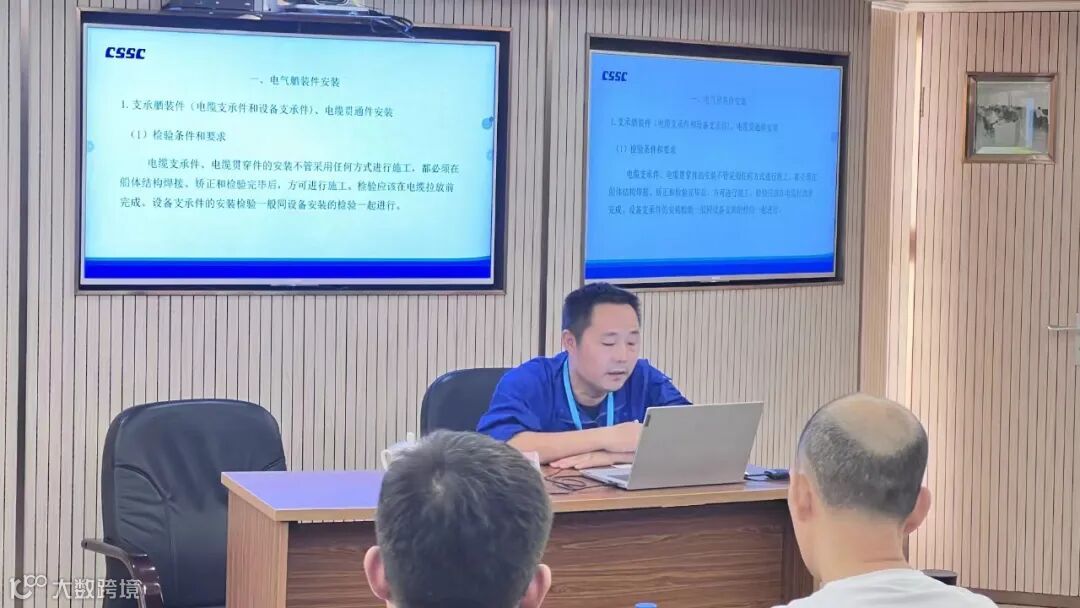 公司技术质量部部长宋利华带队,与3名质量主管共同担任授课讲师。培训涵盖船舶监修质量管理,船舶坞修、船体、轮机、电气工程检验知识及工作实践经验分享等多个方面,通过理论和实际案例分析,让海事局参与培训人员对船舶监修的各个环节有了更清晰的认识和理解,也为上海海事局今后更好地开展船舶监修工作指明了方向。