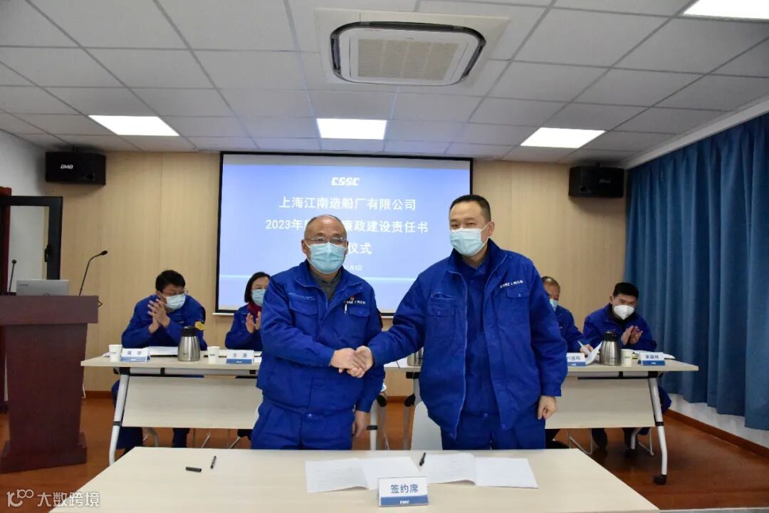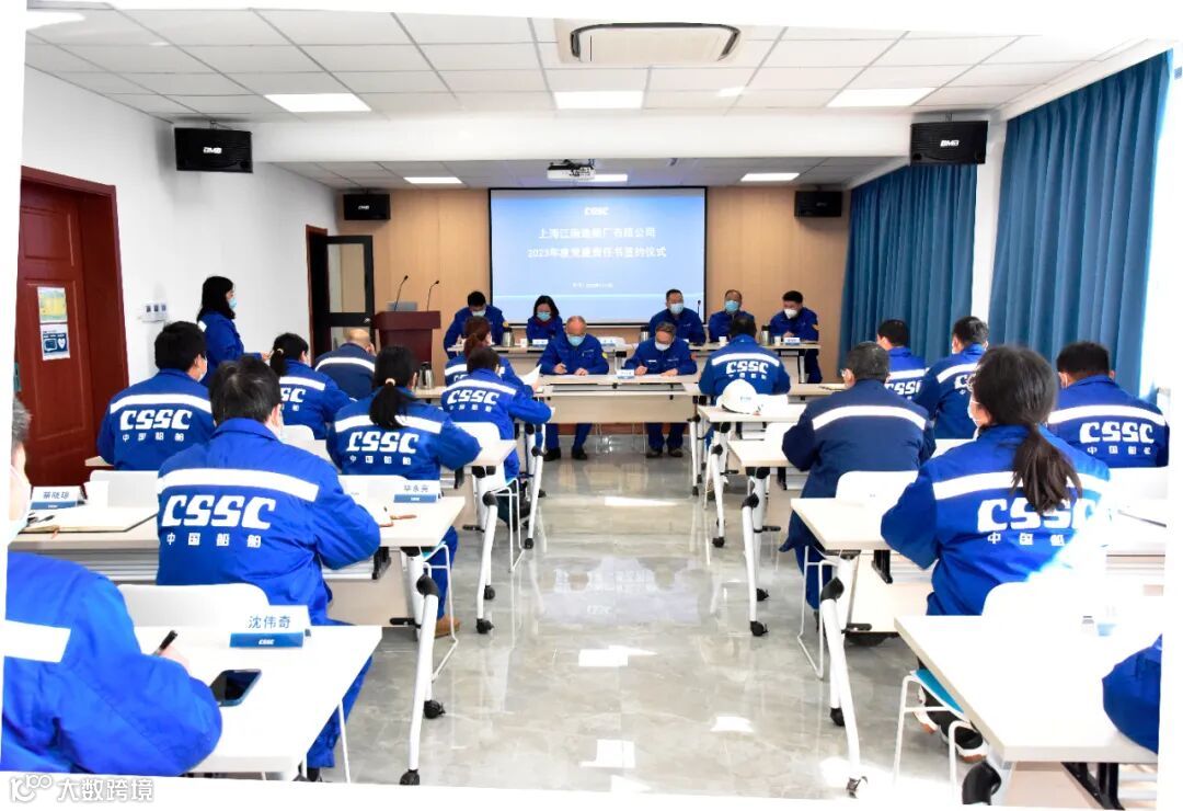 一元复始, 万象更新。2023年1月3日下午,中国船舶集团上海船舶工业有限公司下属上海江南造船厂有限公司隆重举行党的建设、党风廉政建设、安全环保、质量管理、保密责任书签约仪式。公司领导班子成员,以及公司本部科级及科级以上管理人员、下属子公司主要负责人和公司各基层党组织书记等30余人参加签约仪式。
