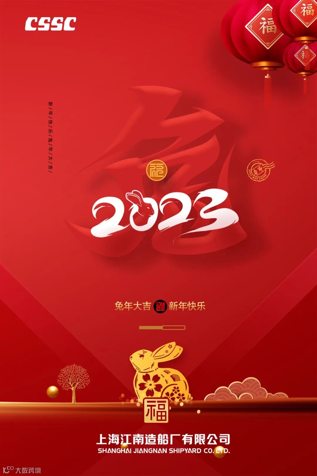 日月其迈,岁律更新。挥手告别壬寅虎年,迎来癸卯兔年,在这辞旧迎新的美好时刻,我谨代表上海江南造船厂有限公司党政领导班子,向一直关心、支持、帮助上海江南的各位领导,向各位合作伙伴,向公司全体干部职工及其家属,致以新春的问候和美好的祝愿。