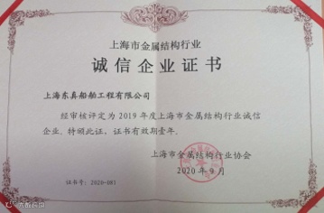 公司下属东真船舶工程有限公司 获上海市金属结构行业协会诚信企业殊荣