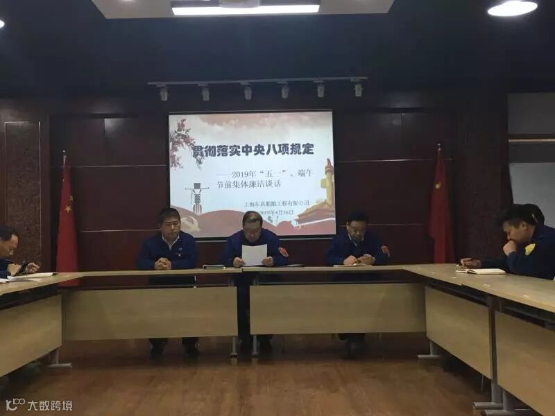 2019年4月26日下午,上海东真船舶工程有限公司在第二办公楼二楼会议室举行了2019年“五一”、端午节前集体廉洁谈话。东真公司党总支书记吴华主持谈话。吴华指出,“五一、”端午节将至,广大党员和领导干部要切实提高政治站位和政治觉悟,把落实中央八项规定和实施细则精神作为检验“四个意识”的重要标尺,严格遵守“十五个严禁”的纪律要求,切实做到令行禁止。上海江南造船厂有限公司驻东真公司纪检员杨小弟在会上对“五一”、端午节期间的党风廉政建设工作提出了具体要求。东真公司全体党员、科级以上干部、作业区负责人以上管理人员、及敏感岗位人员,共计35人参加了集体谈话。