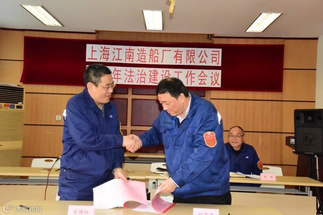 根据工作部署,公司法治建设第一责任人任芳德董事长分别与公司领导班子分管领导签订《公司分管领导法治建设工作责任书》及《上海江南造船厂有限公司2019年度重大风险应对措施落实任务分工》,公司领导班子成员与各分管部门负责人签订《部门主要负责人法治建设工作责任书》及《上海江南造船厂有限公司2019年度重大风险应对措施落实任务分工》。