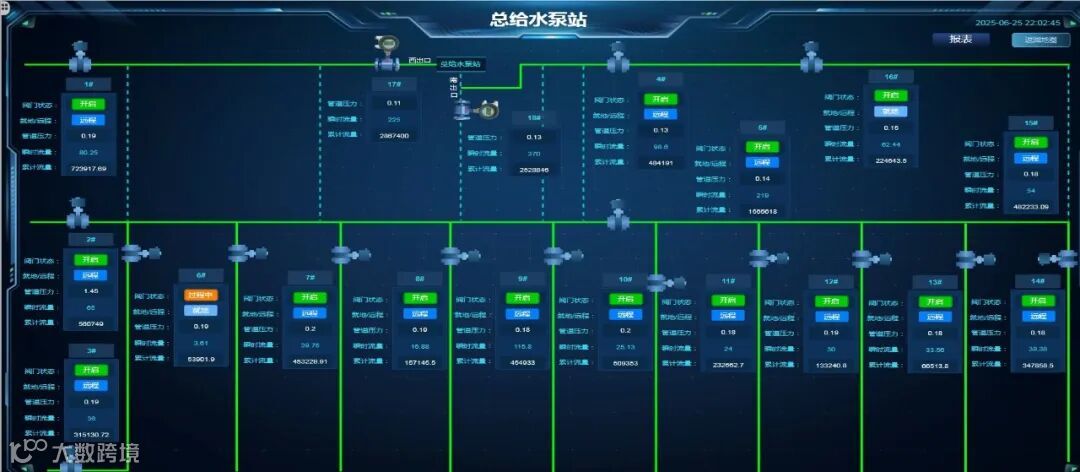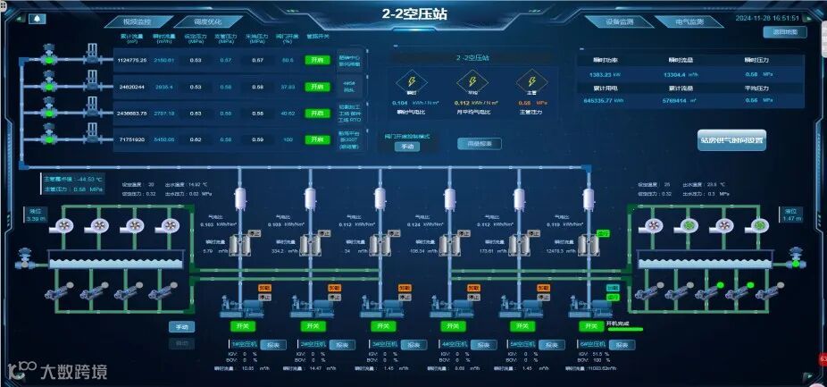 智慧空压站的建设投产使得在不更新主要设备的情况下,实现空压站系统的智能联动,按需供气,系统能效提升显著,降低能耗约900吨标煤/年,每年减少碳排放约4900吨二氧化碳。建立自来水供应的数字化监测网络,实时掌握用水关键数据,快速识别管道泄漏区域,指导精准维修与节水改造,年综合节水量可达80余万吨。