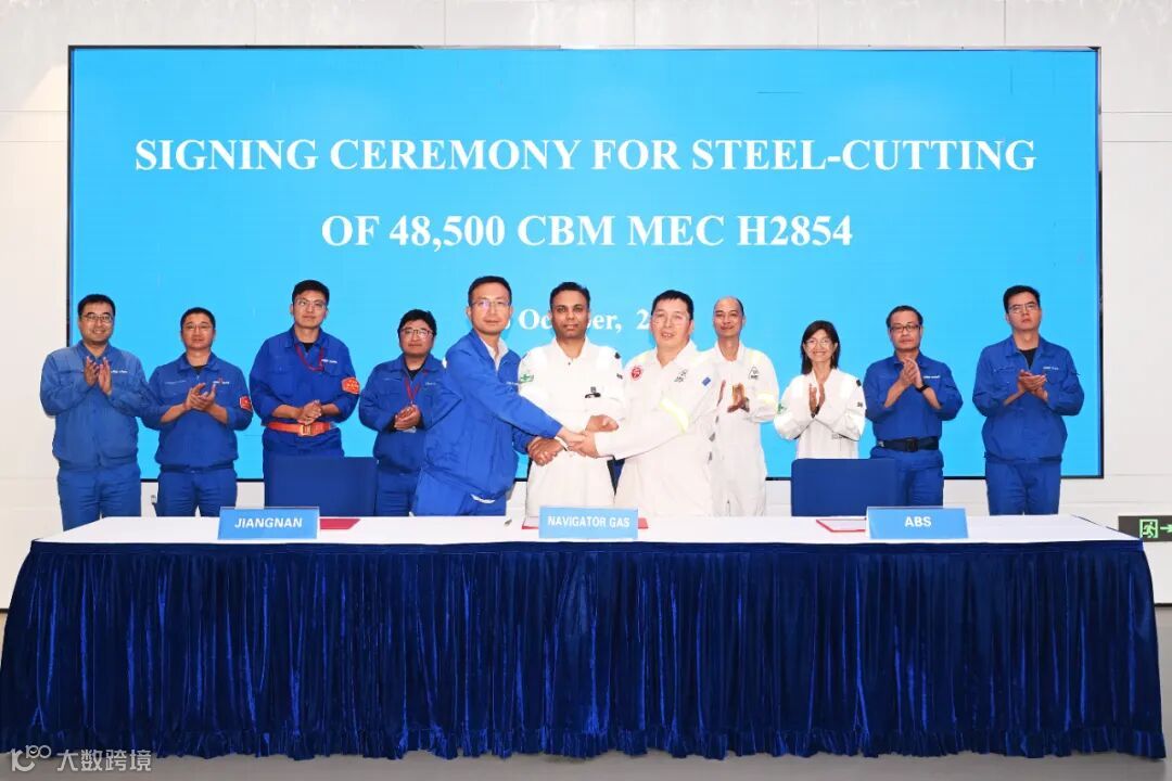10月16日,中船集团江南造船为Navigator Gas公司建造的48500立方米中型乙烷乙烯运输船(MEC)首制船H2854在制造三部切割车间顺利开工。