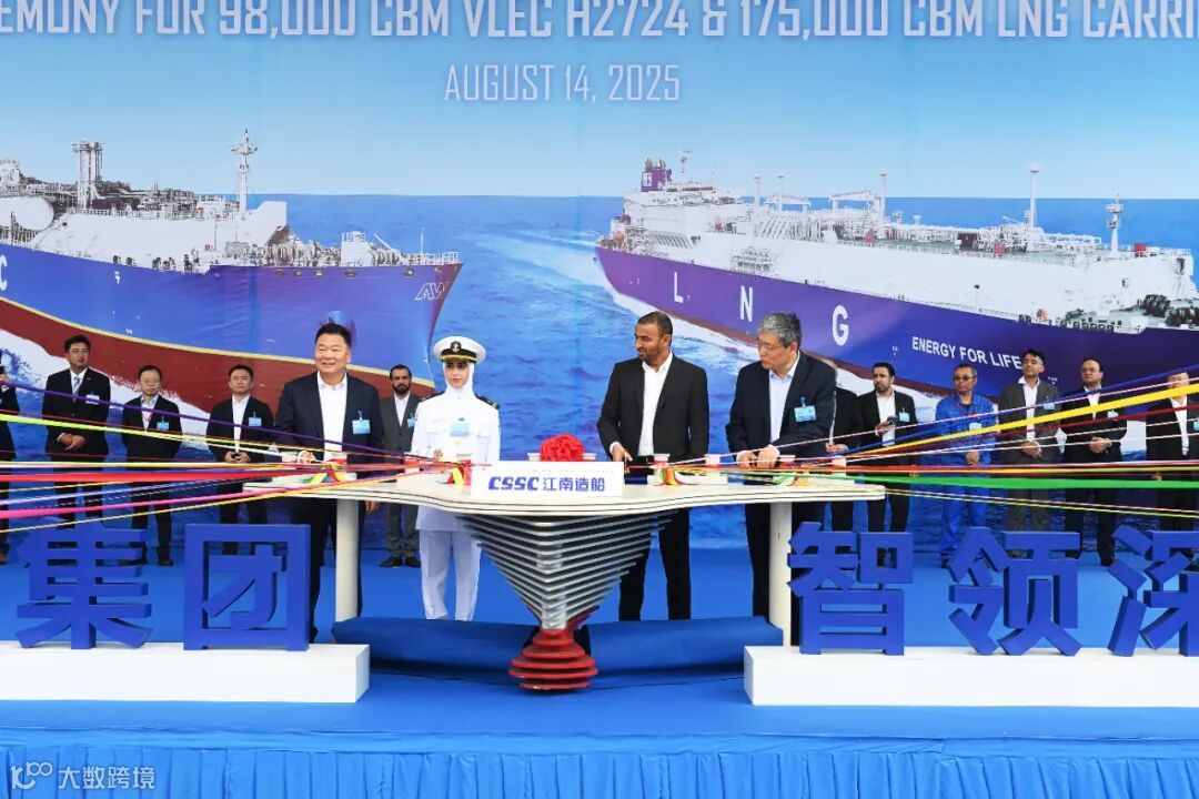 8月14日,中船集团江南造船为阿布扎比国家石油公司(ADNOC)和万华化学合资公司AW Shipping建造的超大型乙烷运输船系列船首制船(H2724船)和为ADNOC 建造的大型Mark III Flex薄膜式LNG船系列船第三艘船(H2702船)举行双船命名仪式。其中,H2724船于当日签字交付。