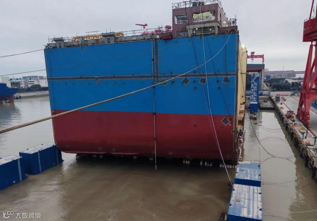 完成甲醇舱的强度试验,需要在船舱内灌入4000吨的水量,这样的重量无论是在平台还是船坞,地基都无法承受,唯有在水上进行,依靠浮力作用才能给强度试验上一道新保险。