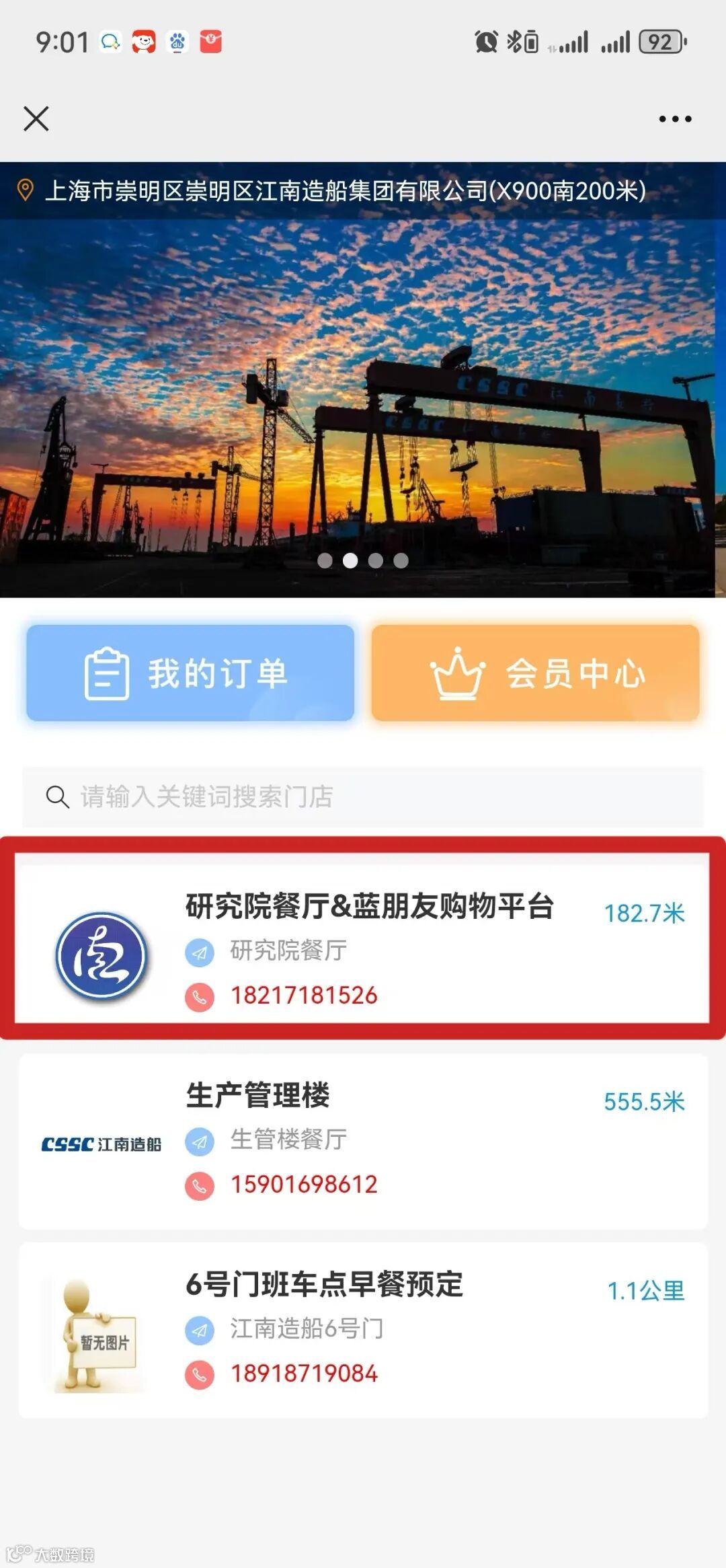 2)生管楼餐厅/船坞餐厅/涂装餐厅/综合楼餐厅/老千人餐厅的餐厅门口。