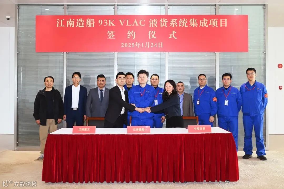 1月24日上午,公司93000立方米 VLAC液货系统集成项目签约仪式在江南重工顺利举行。中国船舶工业贸易有限公司高级业务经理薛思娴,公司配套部副主任王祺,江南重工总经理助理郭胜泉共签合作协议。本次签约不仅标志着江南重工液货系统自主集成业务首单落地,更标志着中国造船业历经多年拼搏奋斗,成功突破国外厂商技术垄断,正式进入VLAC液货系统集成这一高端领域。
