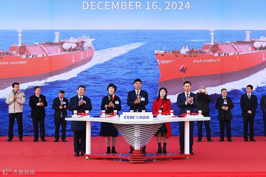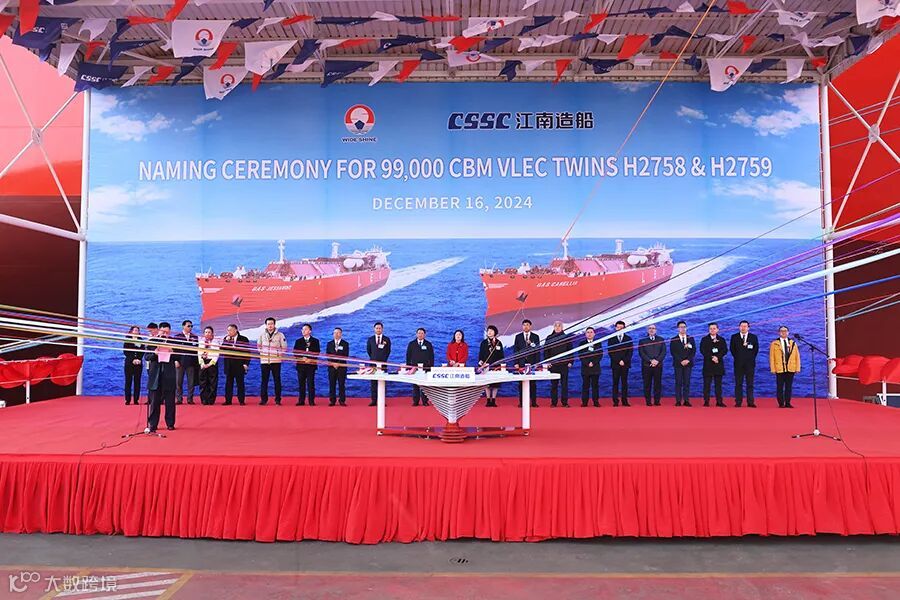 12月16日,中国船舶集团旗下江南造船为西南海运公司建造的99000立方米超大型乙烷运输船1.5版本首制船(H2758船)及第二艘船(H2759船)举行双船命名仪式,被分别命名为“GAS CAMELLIA”和“GAS JESSAMINE”。其中“GAS CAMELLIA”于当日签字交付,标志着公司2024年度增产的一艘气体船圆满交付。