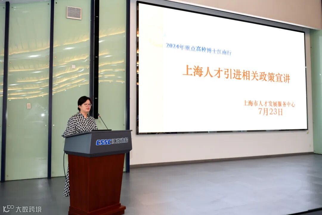 7月23日,公司举办江南造船2024年重点高校看江南暨第六届博士江南行活动,本次活动,共邀请了全国18所重点高校就业负责人及42位在读博士研究生一同参访江南造船。上海市人才发展服务中心罗红梅,公司党委副书记袁飞鹏,副总经理朱明华,总经理助理、人力资源部部长罗厚毅,江南研究院、人力资源部等部门相关人员及在职博士参与本次活动。