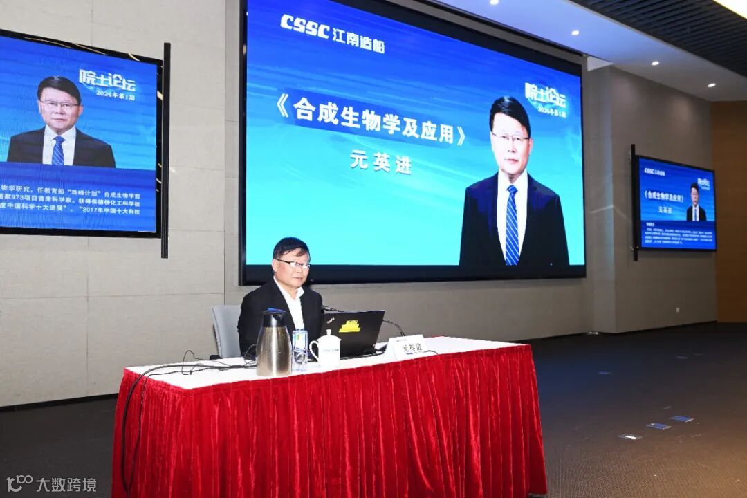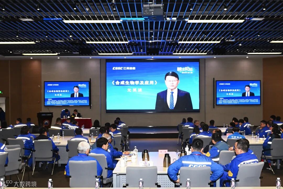 ,从“酵母基因组的设计合成”“基因组DNA合成的应用”“人才培养与国际合作交流”三个方面介绍了合成生物学及应用,并分享了科研心得。报告结束后,元英进和与会人员围绕合成生物学与船舶行业跨界应用深入交流互动。