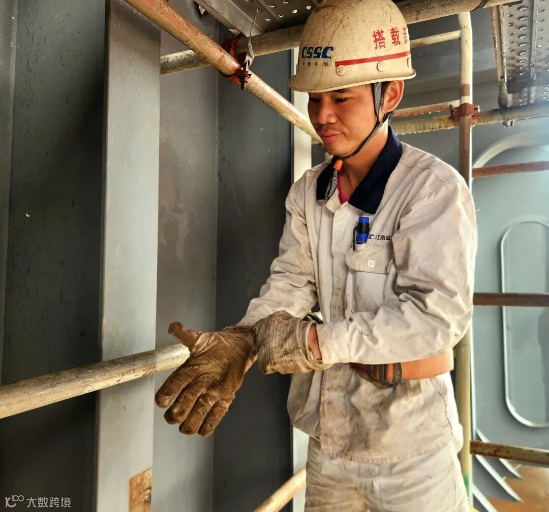 A: 前一段时间做2700这条船的时候,在机舱分段里边,我们班组做了机舱分段的两类底部分段,空间很狭小。里边一搭载,交叉作业就比较厉害,再加上空间狭小,只有50公分宽度,人刚刚才能挤下去。然后活特别急,需要大量的人员进去焊接,但是交叉作业你上面一干,下面就不好干了,那大家都不愿意进到下边去,都愿意待在上边烧上面的,因为烧电焊时候会往下面漏铁水。当时组员都不愿意去,我硬压着!在上面进一步做好防护措,不让它掉火,然后才慢慢地把这个活干下来。尽管工作环境恶劣,任务艰巨,但是通过我们班长所有组员的配合,最后还是顺利地完成了工作。