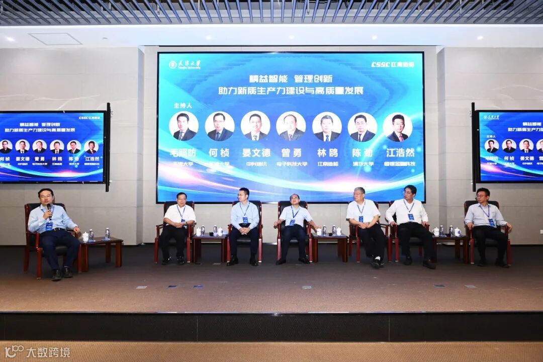 产学界高峰对话环节,公司党委书记、董事长林鸥作为产业界代表向大家介绍了船舶行业的特点,他提出如何通过管理提升和机器换人,让生产效率和质量实现高质量发展。产业代表恒银金融科技党委书记、董事长江浩然,中兴通讯副总裁晏文德,以及学术界代表电子科技大学原校长曾勇教授、清华大学陈劲教授、天津大学何桢教授,围绕“精益智能管理创新助力新质生产力建设与高质量发展”主题展开了热烈讨论。