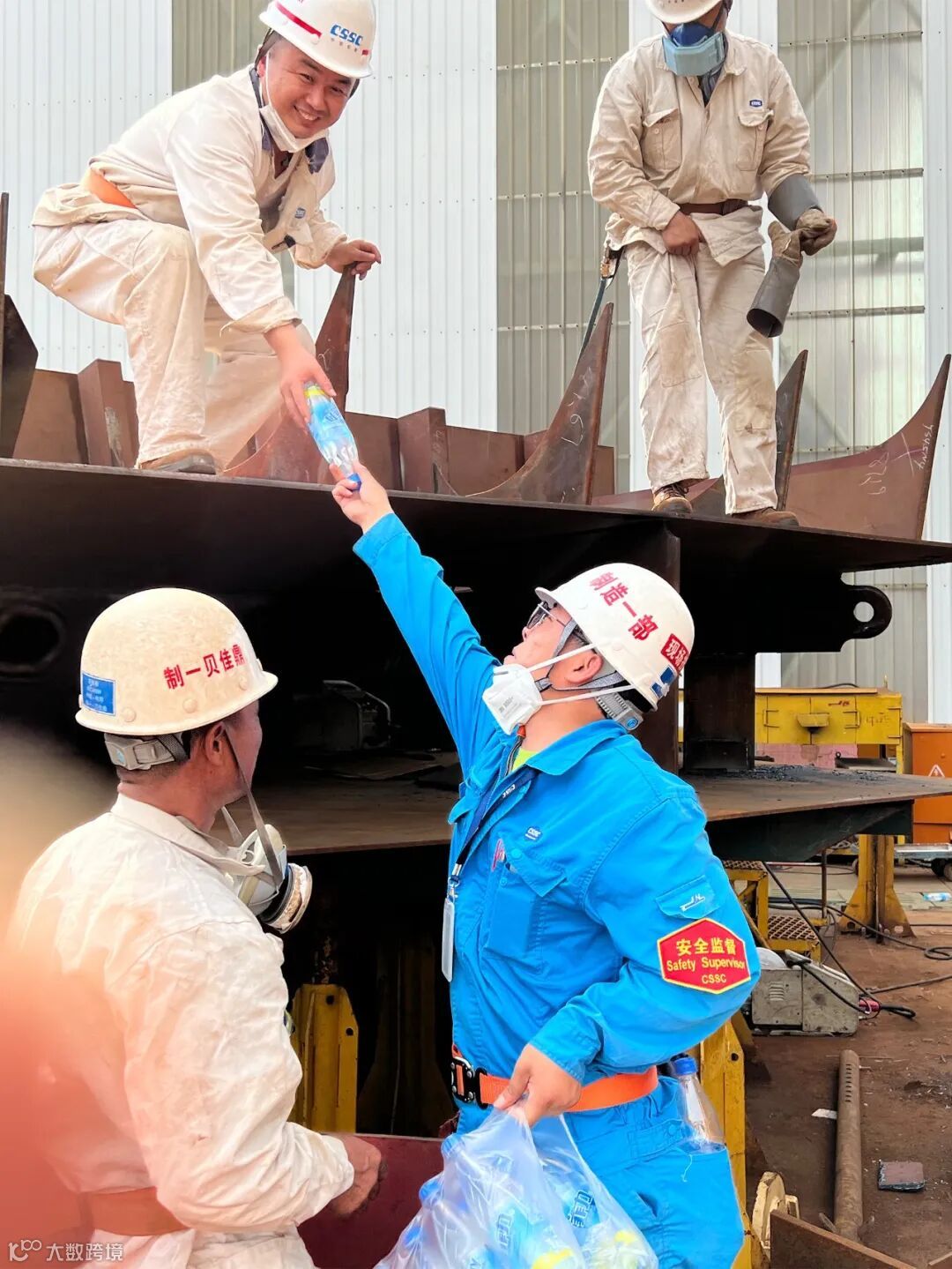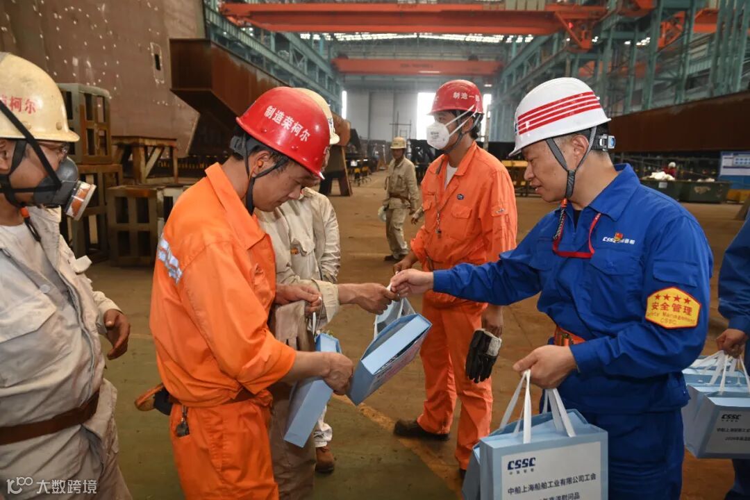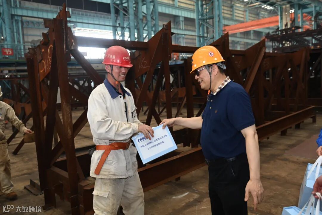 7月4日-5日,在第一波高温来袭之际,上海船舶公司党委副书记、工会主席顾奚,公司纪委书记双华军前往三区制造一部装焊车间,公司党委副书记、工会主席袁飞鹏前往制造二部部件车间为奋斗在生产一线的职工送上慰问和关怀。