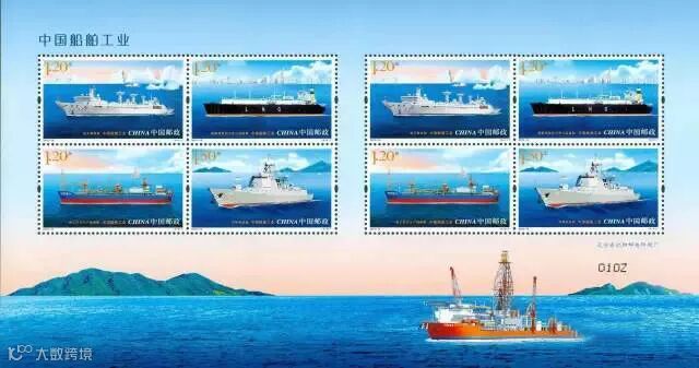 此前,中国邮政曾于2015年6月3日发行过2015-10 T《中国船舶工业(一)》特种邮票,一套四枚:导弹驱逐舰、薄膜型液化天然气运输船、航天测量船、海上浮式储油船。