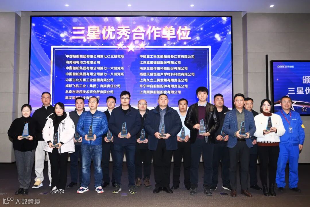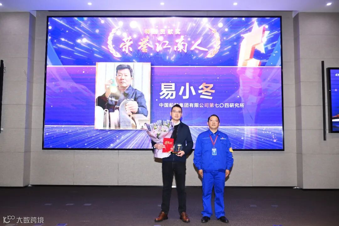会议表彰了6名五星级、10名四星级和15名三星级优秀服务商个人与优秀服务工程师;以及5家五星级、10家四星级、15家三星级优秀供应商。延续第十届大会机制,本届大会评选颁发了“荣誉江南人”奖项,以表彰长期以来对江南提供较大支持的个人,这是江南为优秀合作伙伴设立的最高荣誉。中国船舶集团公司第七〇四研究所的易小东获得该项荣誉奖励,肖文林为他颁奖。