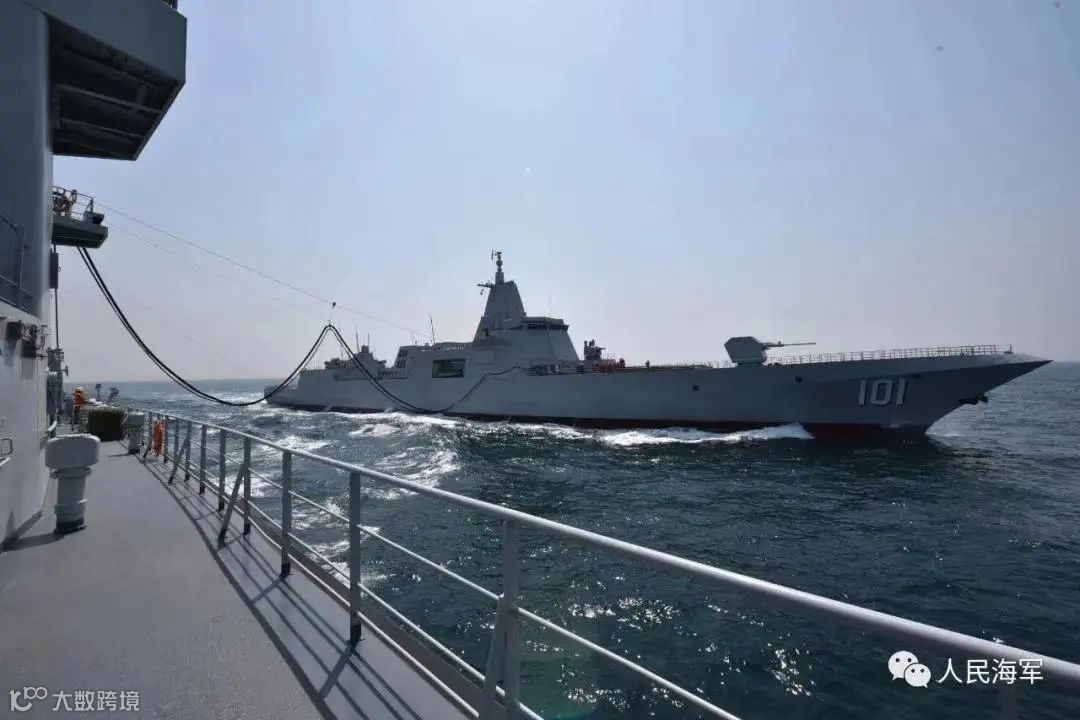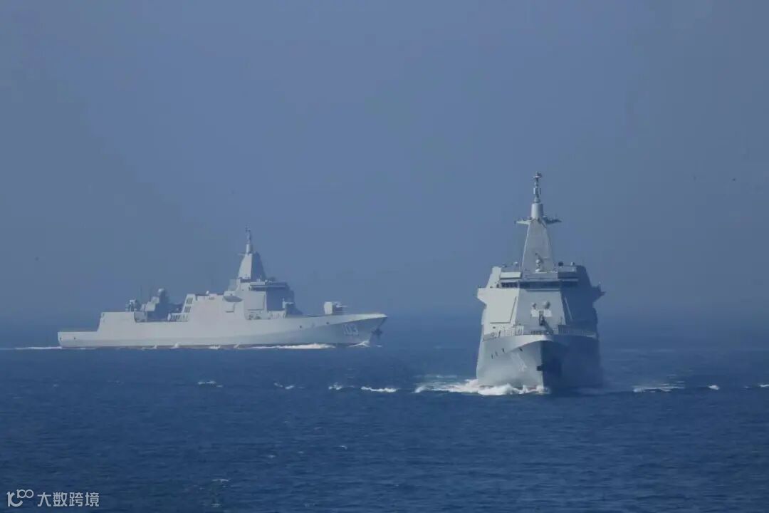 南昌舰和俄罗斯大型反潜舰在联合机动