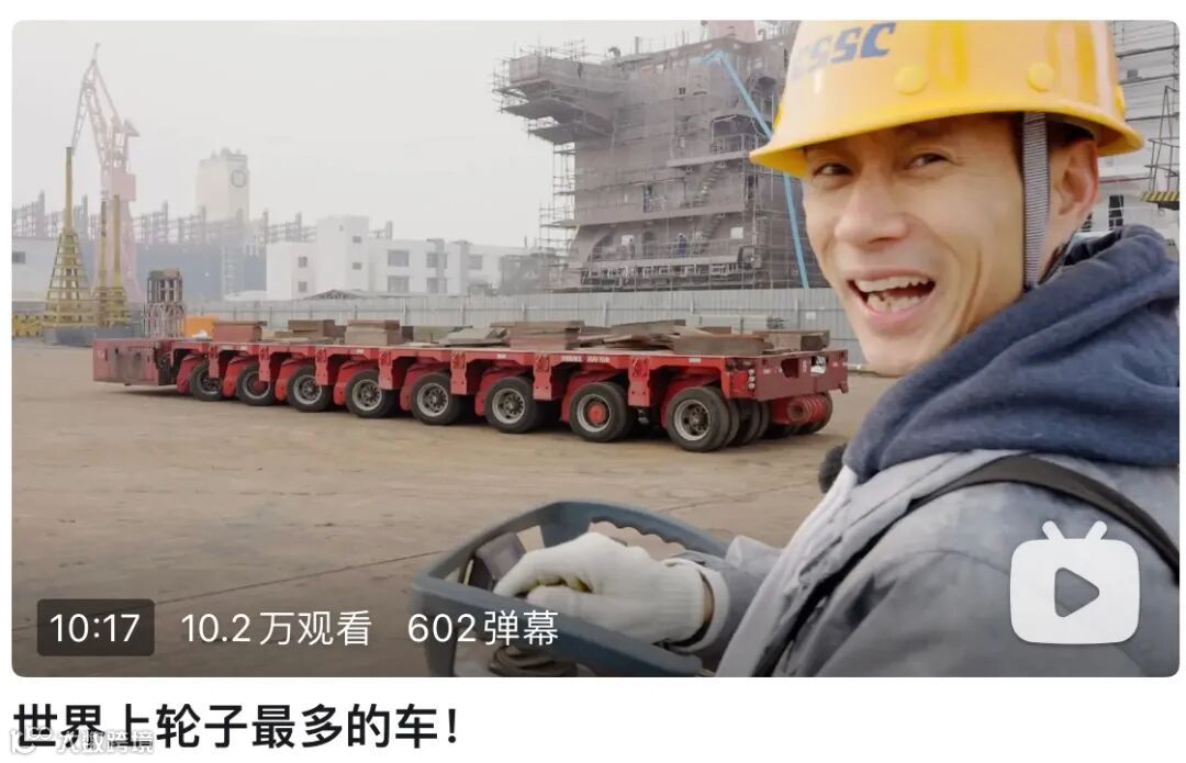 除了正片以外,作为车评人自然也不忘主业——在番外篇中,袁启聪介绍了江南造船的模块运输装置,观看量也达到了10万+。